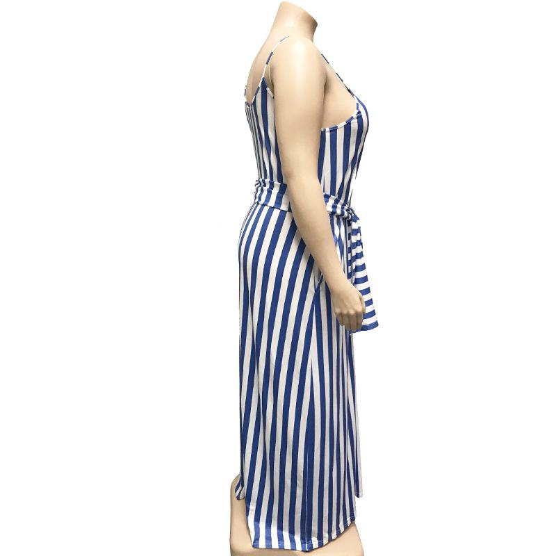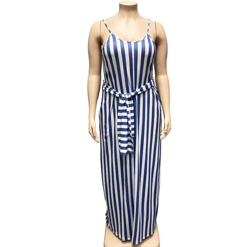 Large Women's Stripe Loose Dress with Belt and Suspender Summer