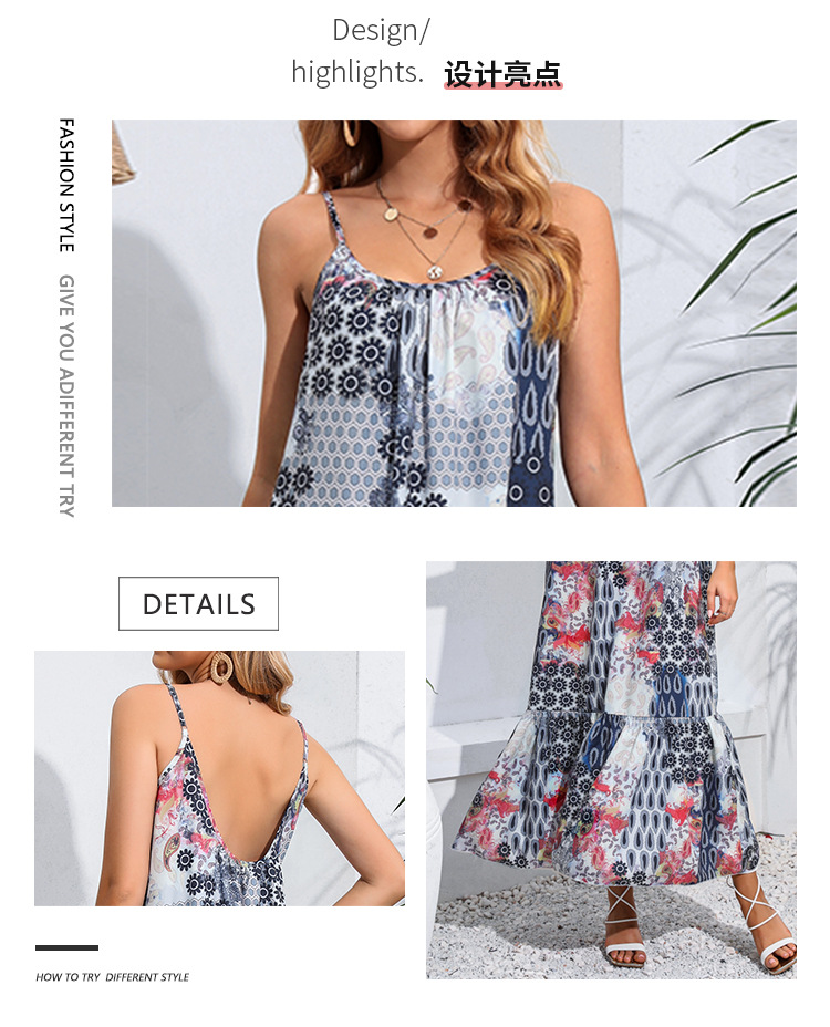Printed Drawstring Bohemian Style Fake Dress Long Skirt