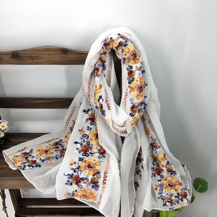 Embroidery Ethnic Style Literary and Artistic Embroidery Cotton and Linen Scarf Shawl Dual-purpose Women's Spring, Autumn and Winter Silk Scarf