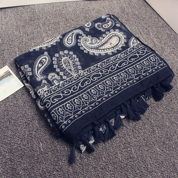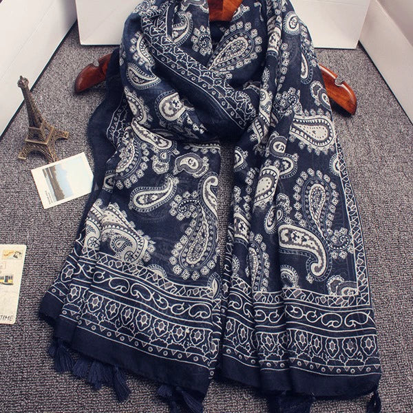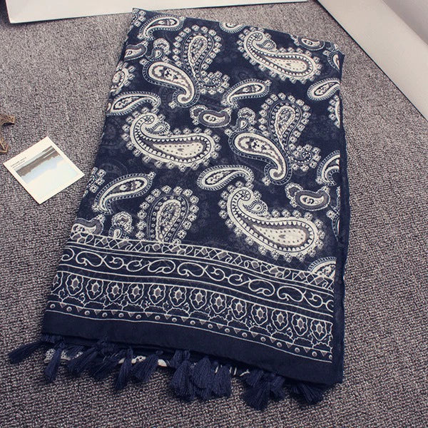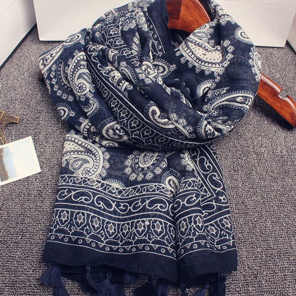 Ethnic Style Navy Blue Cashew, Sunscreen Beach Gauze Scarf