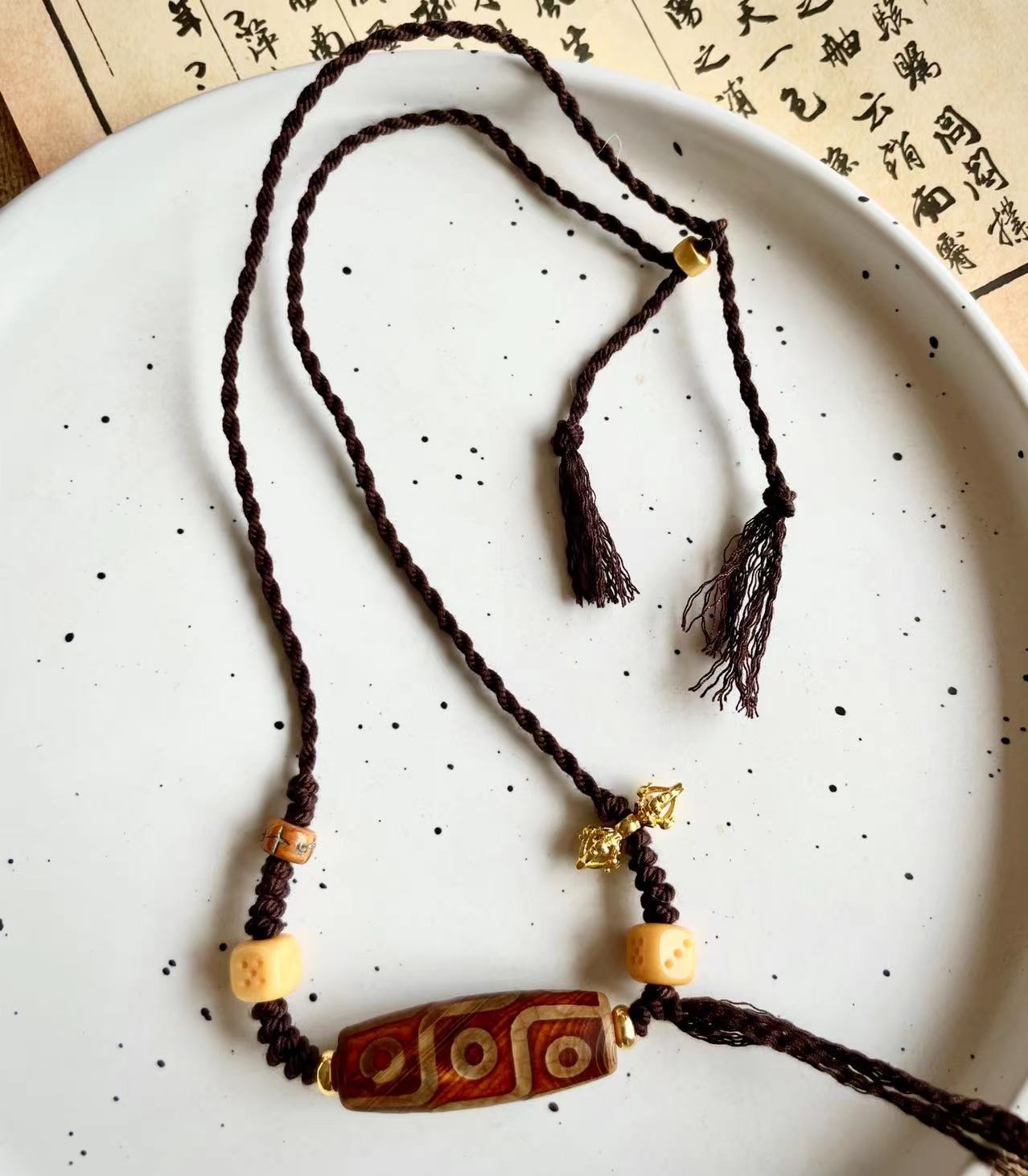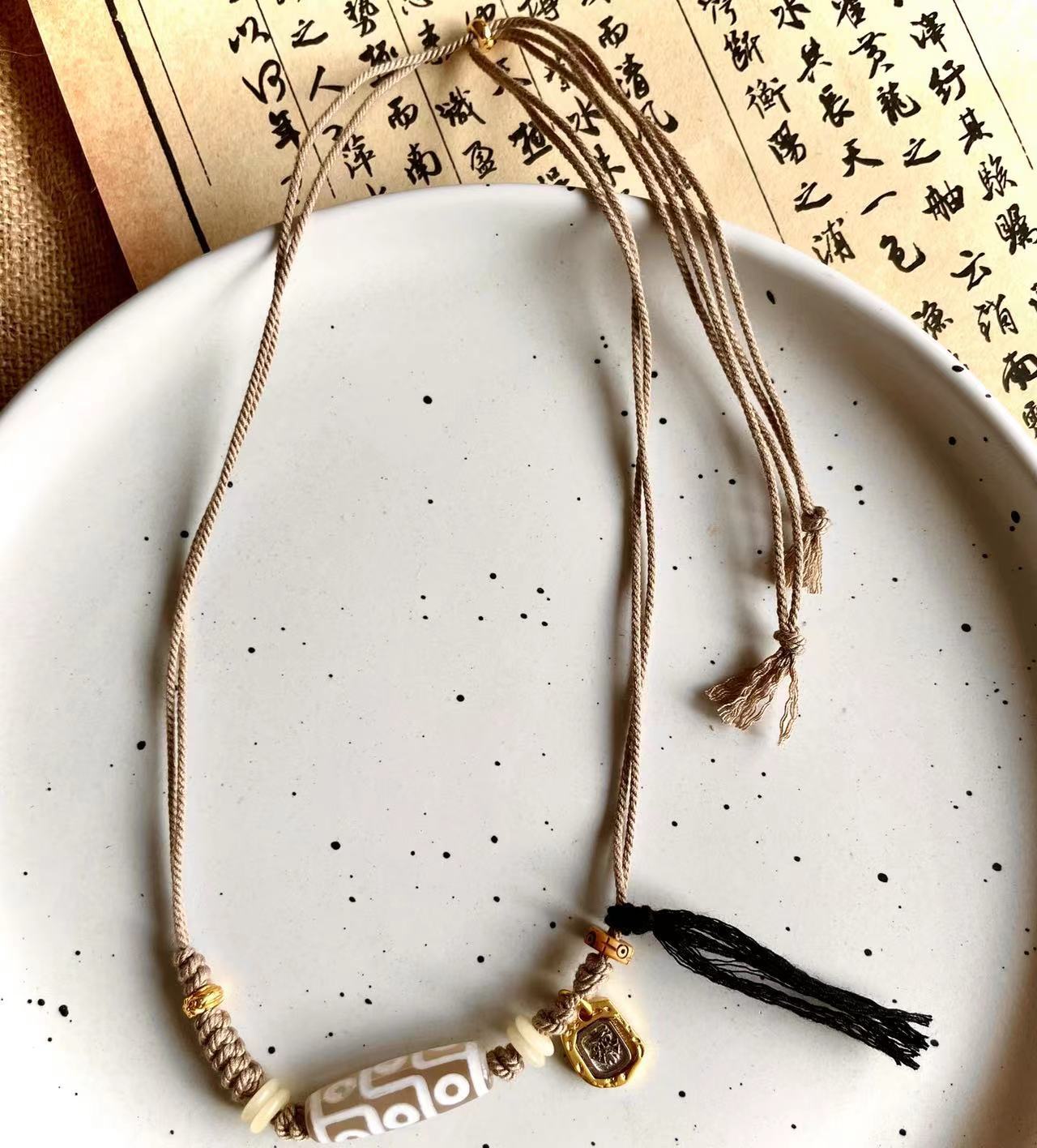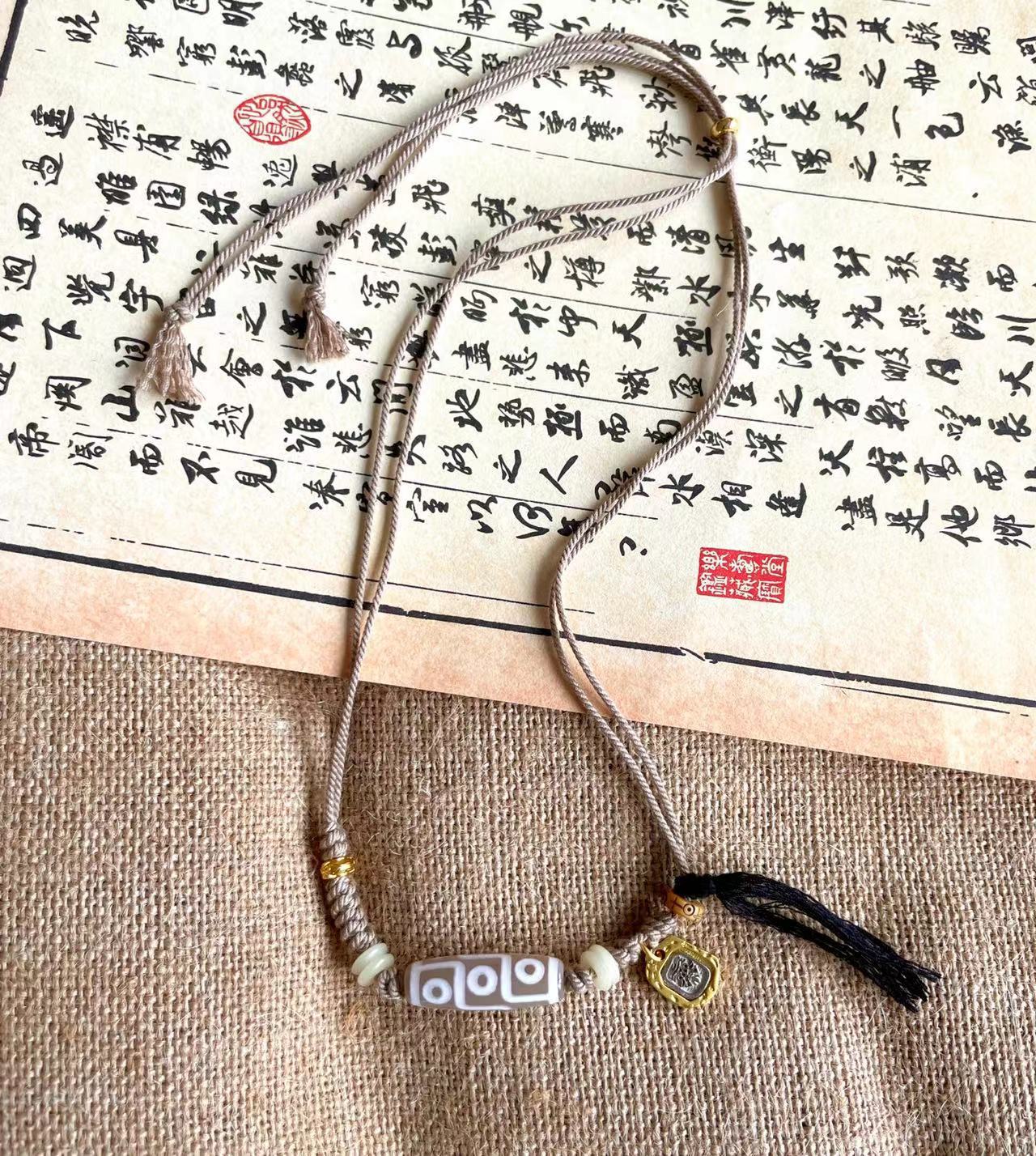 Original handmade woven dzi bead necklaceOriginal Ethnic Tibetan Style Natural Stone Nine-eyed Dzi Beads Zakiram Vajra Pestle Lucky Necklace Retro Compilation