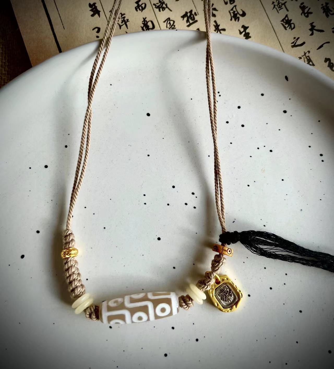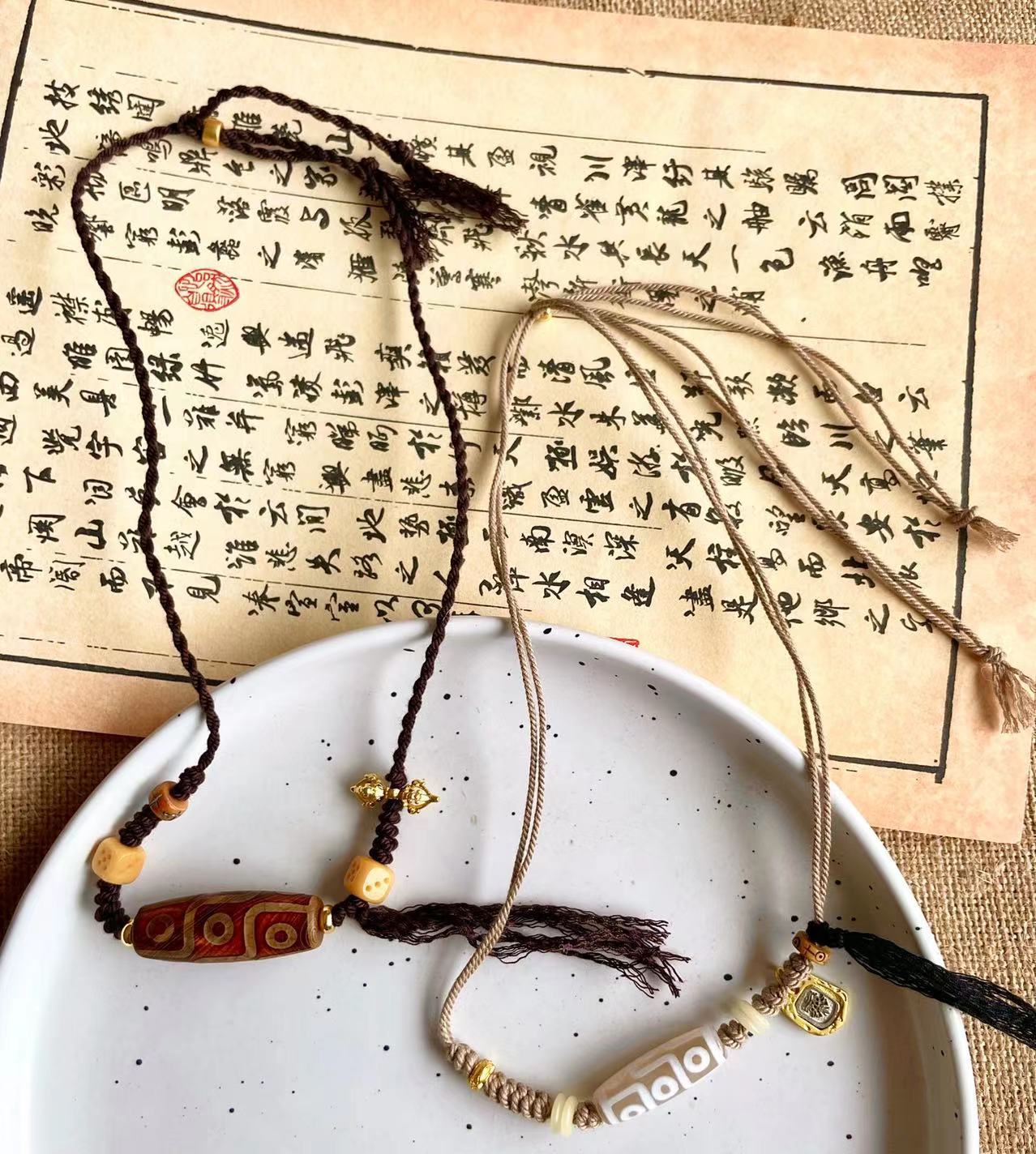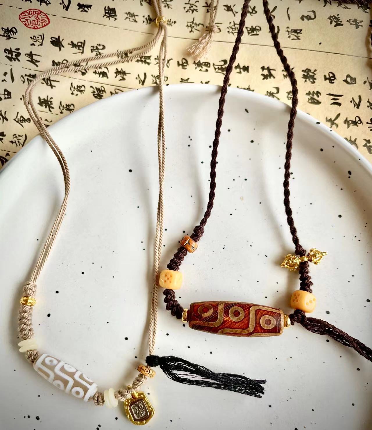 Original handmade woven dzi bead necklaceOriginal Ethnic Tibetan Style Natural Stone Nine-eyed Dzi Beads Zakiram Vajra Pestle Lucky Necklace Retro Compilation
