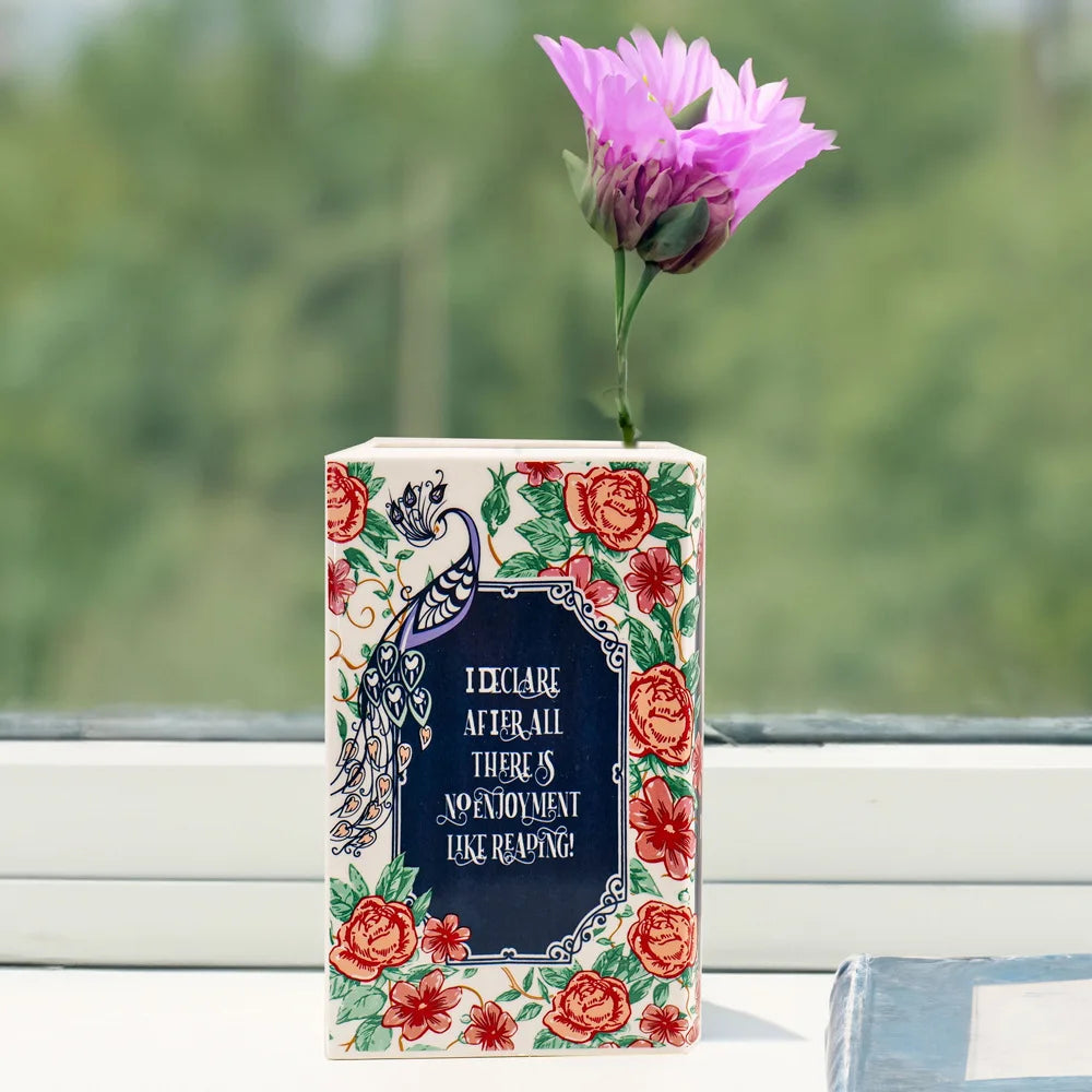 Square Book Ceramic Vase Creative Painted Vase Art Flower Arrangement Accessories Living Room Home Decoration Table Vase