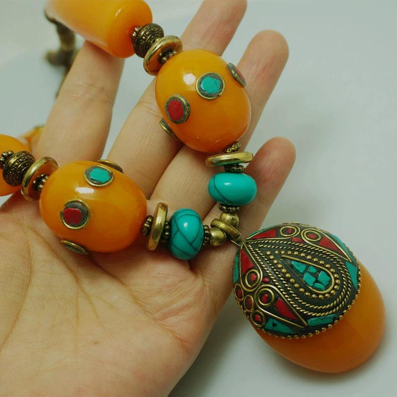 Ethnic Style Tibetan Accessories Nepalese Handmade Necklace with Large Copper Beads Exaggerated Necklace