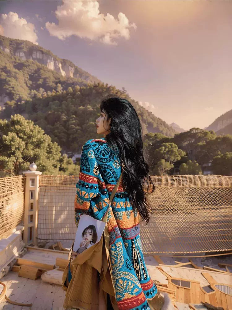 Ethnic Style Knitted Sweater Jacket Top Women's Autumn Fringed Warm Thickened Loose Medium and Long Cardigan