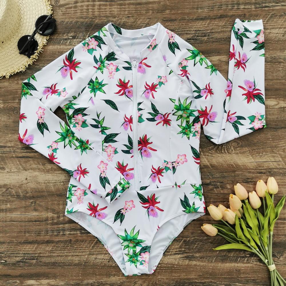 Zipper surfing suit one-piece long-sleeved swimsuit women