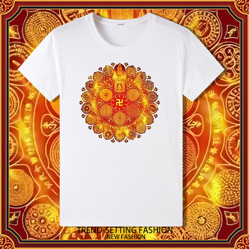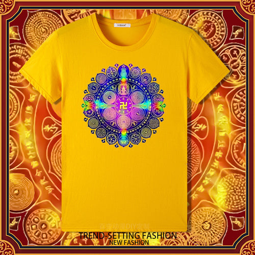 Grand Perfection Victory Mantra Wheel Print Summer Bottom Male and Female Couple Short-sleeved T-shirt
